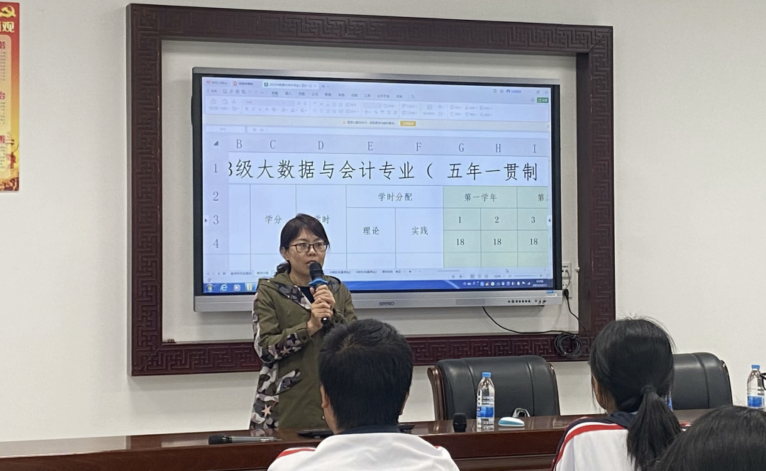 四川財經職業(yè)學院會計學院、工商管理學院領導和老師分別為財經商貿部高一五年一貫制的同學們介紹學校相關情況及準入要求。