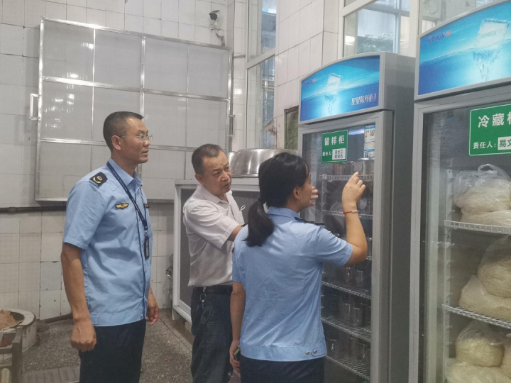 在參觀校園時(shí)范校長向賴所長介紹了學(xué)校的辦學(xué)情況,賴所長和江副所長實(shí)地查看食堂環(huán)境衛(wèi)生情況,從食品安全制度、公開信息欄到從業(yè)人員的健康證,從食品進(jìn)貨環(huán)節(jié)到加工制作,從廚房、肉房、面點(diǎn)室到庫房都進(jìn)行了認(rèn)真的檢查。對學(xué)校持證經(jīng)營、規(guī)范管理、服務(wù)多樣化給予了充分肯定,對存在的問題提出了整改意見。范校長對市場監(jiān)管局到校檢查指導(dǎo)工作表示感謝,后期學(xué)校將不斷加強(qiáng)員工食品安全培訓(xùn),提升管理水平,夯實(shí)工作基礎(chǔ),確保食品安全。