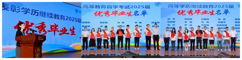 繼續(xù)教育學(xué)院黨總支書記馬瓊宣讀《西南交通大學(xué)繼續(xù)教育學(xué)院關(guān)于表彰繼續(xù)教育2025屆“優(yōu)秀畢業(yè)生”的決定》,合作發(fā)展處副處長溫朋、繼續(xù)教育學(xué)院黨總支副書記程軍、繼續(xù)教育學(xué)院副院長賀強、繼續(xù)教育學(xué)院副院長王克貴分別為優(yōu)秀畢業(yè)生代表頒發(fā)榮譽證書。