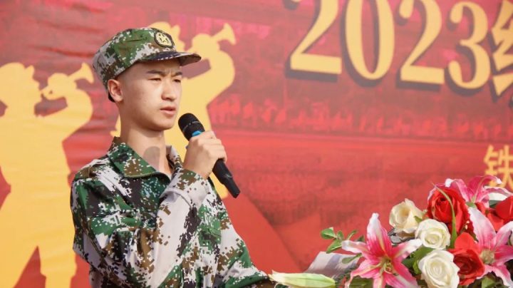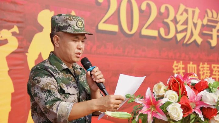2023級(jí)新生軍訓(xùn)團(tuán)團(tuán)長(zhǎng)劉盛乾宣讀軍訓(xùn)計(jì)劃。
